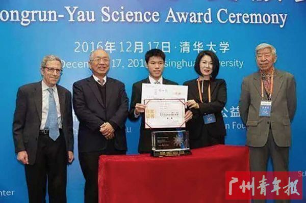 他在重要的学科竞赛和科技活动中屡创佳绩,多次在全国高中数学联赛、希望杯全国数学邀请赛、高中物理力学竞赛等学科竞赛上获奖;连续两届参加广东省青少年科技创新大赛均获得一等奖及多个专项奖,连续两年入围有“中学生的诺贝尔奖”之称的英特尔国际科学与工程大奖赛总决赛。他还两次入围“丘成桐科学奖”总决赛,成为该科学奖成立以来唯一入围两次总决赛的学生,并一举获得了“2016年丘成桐科学奖(数学)金奖”。