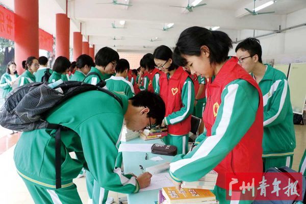 活动当天,记者在学校荷塘前的童书乐捐点看到不少热情有爱的“小青蛙”,他们正忙碌地接收赠书(如图)、登记整理、送出礼品……校团委书记何院琴老师告诉记者,这是学校连续第三年组织同学们为偏远的乡村学校孩子捐赠课外书,让捐赠者换取小盆栽等礼品。延续暖心的志愿服务传统项目有赖同学们的支持,高一的黎铭智与同桌朱广宁为本次活动一共捐赠了25本童书,其中包括沈石溪的动物小说,以及《上下五千年》等历史类书籍。他说,能够用闲置的童书帮助山区孩子,还能换回一抹春色,很有意义。“3月有学雷锋纪念日,有感恩女士们的‘3•8妇女节’,还有保护环境的植树节。我校团委通过组织‘童书乐捐’活动,把这几个有意义的纪念日串联起来,既帮助了山区的孩子,自己又能播种春天,同时还可以把换回的多肉植物送给妈妈或老师,可谓一举三得。”何院琴老师如是说。