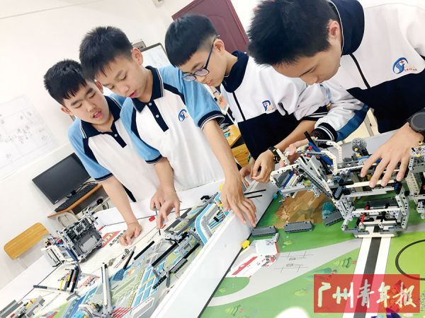 此外,周禹光于2018年与团队的小伙伴一起参加了中国FIRST机器人竞赛协会主办的挑战赛,并以“饮水思源”机器人比赛项目——河涌生态整治设计,荣获国家级的二等奖。在这一项目中,禹光也是关注环保,着眼于珠三角河涌污染问题。在项目设计制作中,他们就如何优化水环境治理机制、制定水资源保护规划以及环保材料的应用等提出自己的思考和解决方案。“我们在方案中提出的亲水平台就不同于传统意义上的亲水平台,而是由仿生植物治理装置、人工动力装置、机械动力装置、传统提水装置、输水系统和水池流部分组成。”禹光一边演示一边介绍,“比如,人工动力装置主要是在该平台上靠近河岸的位置设置一些娱乐设施,如动感单车、手摇轮盘等。我们对这些娱乐设施进行改造,确保人与水不直接接触,加设传送带将娱乐设施与传统提水装置相连,当娱乐设施正常使用时可为提水装置提供动力。”