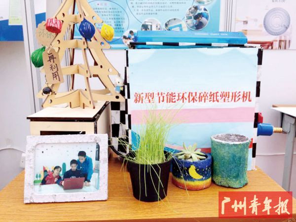 “现阶段市面上的碎纸机只有将纸碎为废纸片,并没有将废纸片进行再处理、再利用的步骤。而且,将办公用纸变为纸浆后,资料再无复原的可能,大大增强了办公信息的安全性。”禹光说,除了制作成纸浆模型,这款碎纸机还可以制作出适合不同植物生长需求的纸浆盆栽。“利用纸浆的吸水性来优化无机物的不足,纸浆中的油墨、有机化合物也可通过植物的分解,起到防止纸上的附着物对土壤、河流造成污染。”周禹光的这一项发明曾荣获第三十三届“广州市青少年科技创新大赛”一等奖及“千师万苗工程科技创新奖”、第三十三届“广东省青少年科技创新大赛”二等奖及“华南师范大学附属中学科技创新奖”、第十六届“广东省少年儿童发明大赛”一等奖、第十届“国际发明展会暨第三届世界发明创新论坛”“发明创业奖•项目奖”金奖及“中国宝武青少年发明奖”等多个奖项。