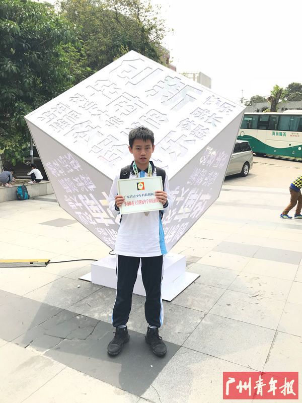 在广州市就有一位阳光健康、热心公益、勇于开拓创新的少年,他牢记习近平总书记的嘱托,学习做人、学习立志、学习创新,在努力完成课内知识学习的情况下,积极参与科技创新活动,他发明创造的多件作品分别在第十届“国际发明展会暨第三届世界发明创新论坛”、“广东省青少年科技创新大赛”、“广东省少年儿童发明大赛”等赛事屡获大奖。2018年,他因在科技创新方面的突出表现获评为全国“最美中学生”、第三届“最美南粤少年”创新好少年。他,就是天河外国语学校初三(4)班的学子——周禹光。