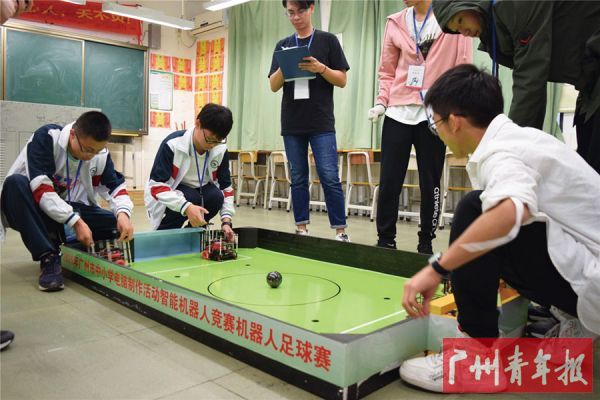 据悉,首届全国青少年机器人竞赛在广州市举办,近20年来,广州市在开展智能机器人科技教育、创客教育、STEAM教育和人工智能教育方面均取得了较好的成绩。自2008年开始,广州市教育信息中心组织全市中小学电脑作品制作活动智能机器人竞赛,我市参赛学生共获得省级奖803项、国家级奖19项,以赛促应用,不断提高学生的动手设计、实践创新、工程思维、编程思维、计算思维和交流合作等多种综合能力。广州市教育信息中心申报的教学研究成果《智能机器人“学•做•创”教学模式的创新实践》荣获2018年基础教育国家级教学成果奖二等奖和2017年广东省教育教学成果(基础教育)特等奖。