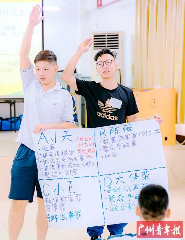 演出后,同学们在演教员的指引下纷纷阅读法律资料,对剧中四个角色所犯的罪行进行讨论。认真聆听了陈薇在狱中的信件后,每组同学抽取任务卡,在演教员的指引下撰写台词,并进行更精彩的环形剧场演出:大佬荣不但不能保陈薇,更怪小天天真;陈薇爸妈在得知女儿被捕后失声痛哭;面对陈薇父母的求情,小飞的父母愤怒地斥责道歉无用……