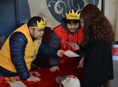 “您好!请您用微信扫描二维码购买,微信支付!谢谢!”启智学校的学生清晰地向顾客介绍购买方式。启智学校副校长余艳华说:“启智学生已经多次作为志愿者参加各类公益活动,这次活动参加的学生主要是能力较强的职高学生,也是一次职业技能的锻炼。”