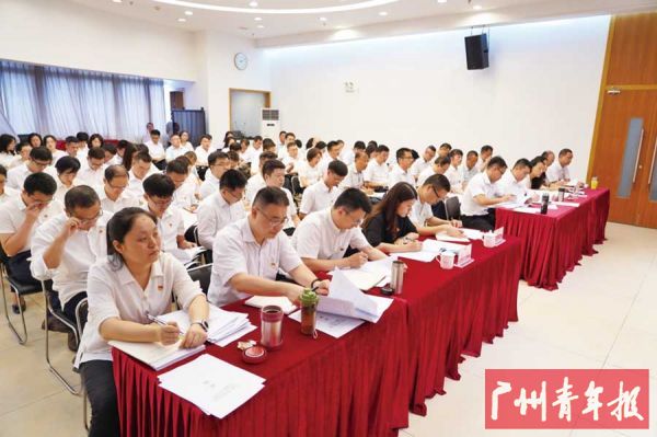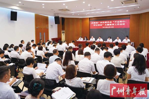 本报讯(记者 谭苏铭 摄影 黄宇帆)6 月 10 日上午,团广州市委召开“不忘初心、牢记使命”主题教育工作会议。市委第七组巡回指导组组长聂贵新及其他指导组成员,团市委书记徐柳,副书记孙柱、王婵娟、叶兴仁、高洪祥出席会议,团市委党组成员、团市委机关全体党员以及各直属单位副处级以上领导干部共 92 人参加会议。会上,团市委党组书记徐柳作主题教育动员部署讲话,市委第七组巡回指导组组长聂贵新作指导讲话,与会人员深入学习并结合青年和共青团工作展开分组研讨。