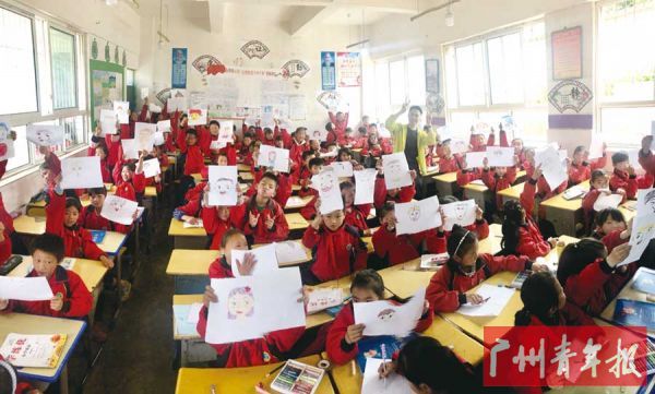 在漫画教学中,威宁的孩子们积极参与互动,许多孩子都在座位上挤出各种表情,相当可爱。