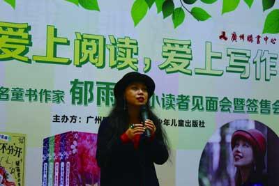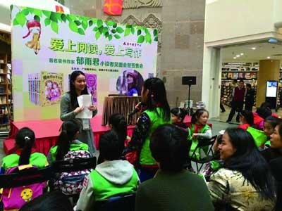 国内著名儿童文学作家“辫子姐姐”郁雨君来到广州购书中心开展“爱上阅读,爱上写作”小读者见面会活动。广州学生通讯社的学生记者与辫子姐姐近距离亲密接触,还对辫子姐姐进行了面对面的专访。“辫子姐姐”郁雨君是著名儿童文学作家,先后获得“陈伯吹儿童文学奖”、“全国优秀少儿图书奖”、“《儿童文学》小说擂台赛金奖”等奖项,作品多次荣登少儿开卷榜前列。有“辫子姐姐心灵花园”系列、“长大有意思”系列、“故事星球”系列等 70余部作品。