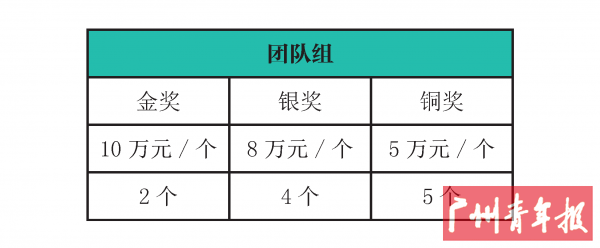 *团队组金银铜奖总奖金为人民币77万元,2年内在广东落地创业的,可再分别申请10万元、7万元、5万元项目落地资助,总奖助金额150万元。
