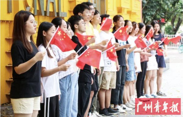 暨南大学1800余名师生在开学日当天参与了升旗仪式,和国旗同框,为祖国祝福。升旗仪式结束后,学生队列摆出国旗以及“70”元素。此次活动还吸引了许多来自港澳台的学生以及华侨学生的热情参与,同学们对于此次活动也有着自己的感受,同时也为祖国送出了自己的祝福。一位暨南大学香港籍学生表示,“不同意义在于我能够知道国旗的历史、发展,我们要怎么去保护国旗。因为作为中国人的我们,我们需要去站在国旗这边,不让它受到任何伤害,我也希望自己也能够像祖国一样,有一个好的进步。希望以后能够用我的声音、我的文字去跟全世界人民说‘我是中国人’!”