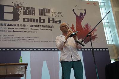 5月29日,在中国与丹麦建交65周年之际,乘国家“一带一路”的春风,羊城青少年艺术素养提升计划之“Bomb Ba(蹦吧)”丹麦打击乐家 Thomas Sandberg 专场音乐会在广州市第十六中学举行,吸引了近400名打击乐的学生爱好者携“绿色乐器”前来参加。音乐会以“演+讲+享”的形式进行,为听众们上演了一场与众不同的“环保”打击乐盛宴。