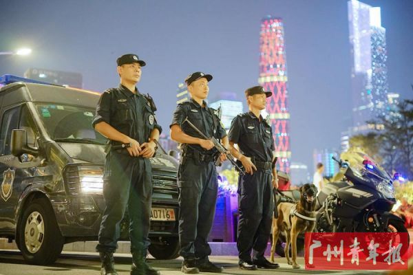 焰火晚会、主题灯光秀、群众文艺嘉年华……夜幕降临,珠江边璀璨夺目,越来越多的群众涌向江边。每场完美的落幕,人流散去,现场未离去的永远都有公安青年群体的身影。在重要路段及核心区域,利用水马、铁马、铁网等安保硬件设施设置安全防线;在交通管控岗位持续奋战10小时,做好交通疏导,背对焰火保卫观展人流;加强重点违法车辆、重点违法行为查处,做好会场现场和周边道路临时交通管制。嘶哑着嗓子,耐心地疏导现场群众,广州公安青年,守护一方平安。