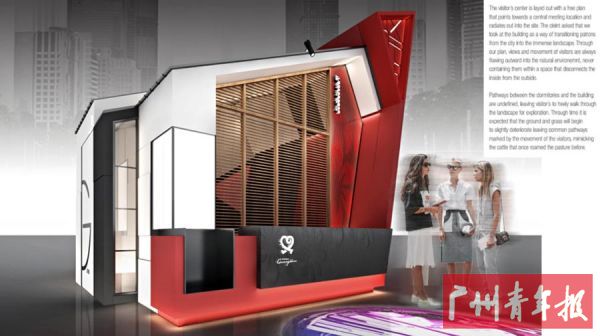 该设计像一个“礼物盒”,从木棉花、西关大屋和定位图标等元素中获得灵感,呈现出一个独具广州特色的驿站,作为一个信息传达和功能服务的载体,是呈献给这座城市的礼物,也是广州献给世界的礼物。从功能上,是城市名片、拍照景点、一代人的记忆点,或是人们交流、互动的空间场所。建筑一侧用于多媒体信息的宣传;另一侧抽取了传统建筑中花窗的元素,屋顶上将传统建筑中的烟囱转化成一个会发光的爱心标志,在城市中指引和定位坐标。