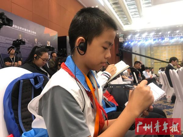 “我是在广州学习成长的00后创新青年刘名修……”大屏幕播放着广州青年创新创业宣传片。看着那些朝气蓬勃、自信洋溢的哥哥姐姐、叔叔阿姨为着自己的梦想不断努力、不断创新,还是小学生的我突然也有种跃跃欲试的感觉。