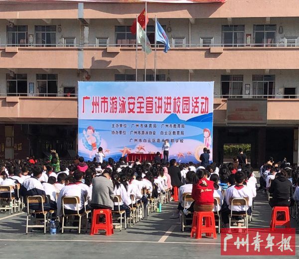 本报讯(记者 黄宇帆 通讯员 穗体宣)11月19日,广州市体育局、广州市教育局联合开展广州市游泳安全宣讲进校园活动,首站在白云区嘉禾新都学校举行,共有1130名师生参加了活动。