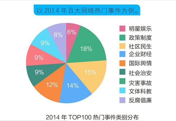 从百搭热门事件的整体分类上看,娱乐明星、政策制度和社区民生类话题的事件最多,其他事件总体均衡,反腐倡廉是微博热门事件中占比最小的类别。