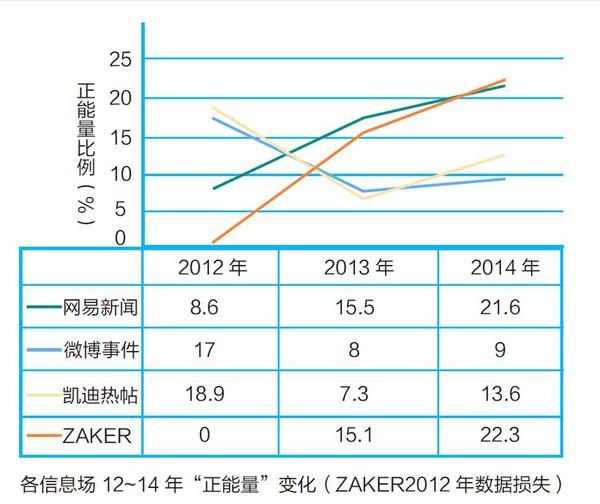 总体上看,过去三年,正面信息的传播量快速增长,网民对正面新闻的关注比例有所提高,网民情绪的理性值及积极态度值有所上升。不同舆论场中的网民总体上减少了玩世不恭的“围观”、“浮云”心态,增加对各类社会问题解决的期待值,逐渐开始觉得依靠政府改革和自己的努力可以对现实问题有所改变。