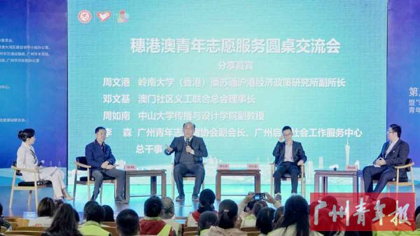 在主旨演讲后的圆桌交流会环节,周文港研究员,邓文基先生,周如南副教授,广州青年志愿者协会副会长、广州启智社会工作服务中心总干事李森等嘉宾就如何增强穗港澳三地青年志愿者和志愿服务组织的交流,如何有效推进穗港澳青年志愿服务合作交流机制建立和完善等内容各抒己见,从而为粤港澳大湾区特色的青年志愿服务事业提供专业化、规范化、科学化、国际化发展的参考建议。