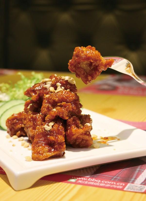 食物总是能给气氛添上一把火。这里的“黄金橄榄炸鸡”是必点的,外壳薄而脆,是用高丽米粉调制的,炸到165℃,入口带着热气又不烫嘴。不像其他的炸鸡,一口咬下去流出好多油,比比客的炸鸡用的是地中海原装橄榄油,炸得外焦里嫩,肉质白中透着淡淡的粉红,感觉新鲜、有嚼劲。为了健康着想,炸鸡口味适中,以免摄入过多的盐。配上新鲜的蔬菜,一点也不油腻,肠胃轻轻松松。同类的炸鸡中,还有“亲爱的蒜”收获众多好评。