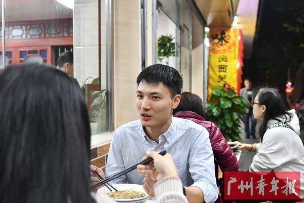 “听朋友介绍,西华路是广州比较有名的美食街,所以经常过来吃饭。”采访时,阿贤正和同事在西华路的一家小食店吃牛丸粉。阿贤说自己不喜欢宅在家,会感觉不舒服,所以每逢周末他都会约上朋友一起出去吃东西或者逛街。“我很喜欢在广州生活,我觉得广州是一座很繁华、很有粤味的城市,本地人比较多,物价也没有其它一线城市高,而且这里的交通都很方便,可以玩的地方也很多。”阿贤说自己还挺满足现在的生活状态,“我是一个很乐观、知足的人,我很喜欢目前的这份工作,虽然刚出来工作,工资还不是很高,但自己还是想吃什么就吃什么。”