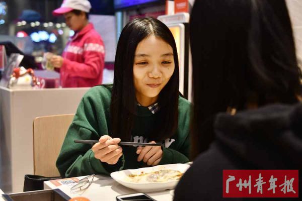 贺学惠,22岁,湖南人,六年前来到广州读书,现在在天河区的一家互联网公司上班,“以前做商务业绩压力大,基本上天天加班到晚上10点,下班后就在公司附近吃快餐,比较快速地去解决一顿饭。”但现在适应了工作之后,加班变少了,所以只要一有时间,学惠就会去吃自己想吃的东西。