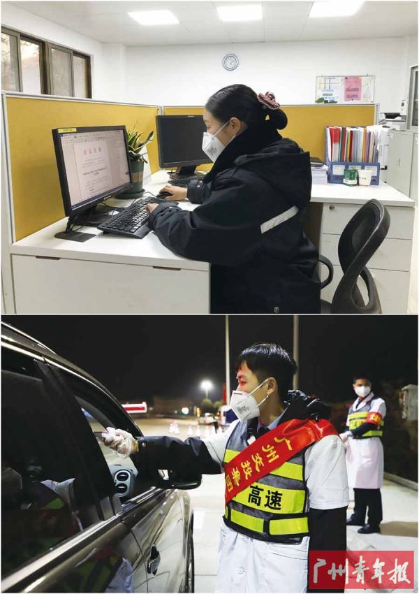 日期:[2020-02-06] 版次:[A04] 版名:[青榜样]本报讯(记者 李扬 通讯员 黄亚娟 李松 江丽芳 黄光淼 摄影 章海军)当2020年的春运保畅时期遇到疫情突发,注定这场战役困难重重。面对疫情,广州交投集团团委认真贯彻落实团市委和集团党委疫情防控工作部署,第一时间下发了《倡议书》和《关于发挥各级团组织和团员青年突击队作用积极投身打赢新型冠状病毒感染的肺炎防控阻击战的通知》,号召广大团员青年紧急行动起来,投入到“防控疫情春运保畅”行动中。团员青年们发挥着青年生力军的作用,纷纷奔赴抗击疫情的“高速第一线”。其中大广高速团总支有这样一批青年,他们是“逆行”的夫妻兵,把恩爱“秀”在了抗击疫情的第一线。