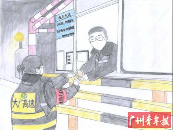 何丽曼与谭文杰这对90后退伍军人夫妻,是同事们心中的好榜样。自1月24日公司启动新型冠状病毒感染的肺炎疫情防控措施以来,夫妻俩便再也没有休假回过家。丈夫谭文杰在监控信息中心每天接听无数的电话,以致声音愈发嘶哑。妻子何丽曼利用自己休息时间以一种特殊的方式给同事们加油,打气。她默默地在公司职工之家花了将近十几小时完成两幅画,画中愿望是:守望相助,共克时艰!“全国人民每天都在众志成城‘抗疫’,我们高速公路人同样也勇于担当、主动作为。对于我们奋战在抗击一线的‘战士’,我想用我的方式记录下来,献给他们!”