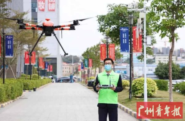 广电城市服务青年志愿者运用无人机设备进行道路实时监测工作