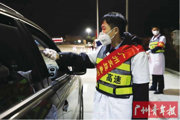 五丫口大桥,横跨广佛两座城市,是广州重要的西大门,也是疫情防控关键时期重要的交通检疫关口。荔湾区海龙街团工委积极发动辖内团组织及青年志愿力量,对该入囗过往车辆人员进行24小时交通联合检疫,阻断输入性疫情风险。作为入穗的主要交通路口,面对不断增大的车流量,志愿力量严重紧缺。辖内团组织——广中医三院团委收到信息后,立即发动“冬青卫矛青年突击队”迅速支援,广泛发动青年志愿者加入防疫队伍。很多一线医务人员不辞辛苦,牺牲自己的休息时间,下完夜班做志愿、做完志愿上夜班。“拦车、问好、测量体温、报体温、引导……”恰遇返工高潮,看似简单的工作,一天要重复数万次。但青年突击队的志愿者们都争着多上岗一分钟,好让其他人多休息一分钟。