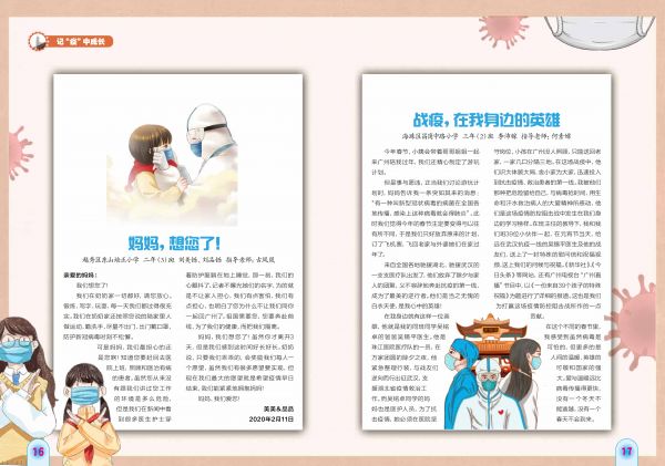 在班主任的教导下,我和我们班39位小伙伴一起,在元宵节当天,给远在武汉抗疫一线的吴锡平医生及他的战友们,送上了一封特殊的慰问信和祝福视频,送上我们的问候与祝福。《新华社》、 《今日头条》等网站,还有广州电视台“广州直播”节目中,以《一份来自39个孩子的特殊祝福》为题进行了详细的报道。这也是我们为打赢这场疫情防控阻击战所作的一点贡献。