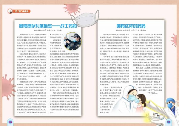 妈妈却说,比起白衣天使们在医院医治受疫情感染的患者们,她的工作虽然费点时间和精力,但根本不算什么,又没有生命危险。在疫情下,能为人们做些事情,是很有价值的。可能是妈妈眼里闪着的光,让我觉得,也许好妈妈的标准不是那么单一的,哪怕她不能陪我玩、不能辅导我作业,但是她也是个好妈妈,因为她用实际行为教会了我怎么样做一个有价值的人。
