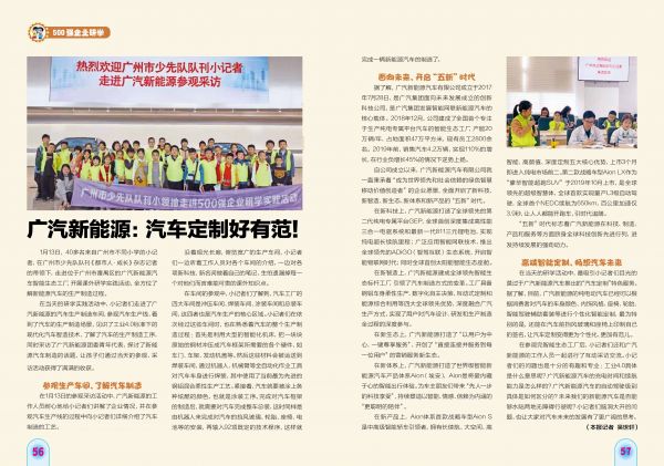 在当天的研学实践活动中,小记者们走进了广汽新能源的汽车生产制造车间,参观汽车生产线,看到了汽车的生产制造场景,见识了工业4.0标准下的现代化汽车智造技术,了解了汽车的生产制造工序,同时采访了广汽新能源团委青年代表,探讨了新能源汽车制造的话题,让孩子们通过当天的参观、采访活动获得了满满的收获。