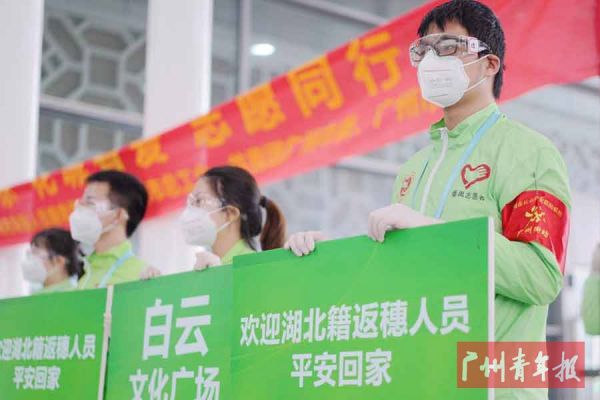 团白云区委通过出动突击队、后援队、咨询队、亲人队等四支队伍,做好湖北籍返穗人员关心关爱,有序推进企业复工复产。其中,多位白云区湖北籍市民解除居家隔离后,志愿报名成为防疫志愿者,主动为湖北老乡上门量体温、送菜等,以乡情拉近距离,以自身辐射群体“解除隔离之后,我也成为了一名防控志愿者,我感觉这里很温暖,大家都帮助了我,我也想去帮助别人。” 白云区湖北籍志愿者肖烽表示。