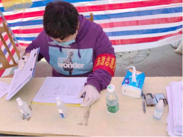 “防控疫情,人人有责。我能够在村里奉献自己一点小小的力量也很开心了,希望自己的志愿者工作能给村民带来一丝丝温暖。”