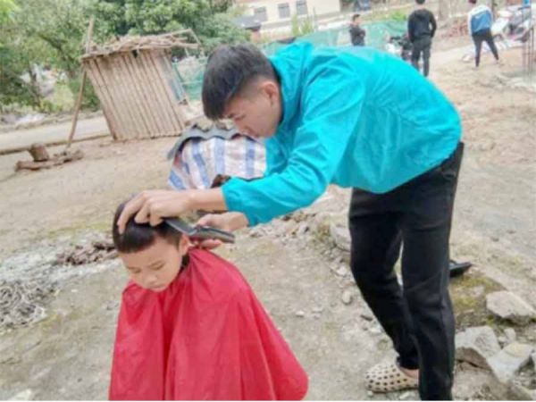 杜俊锋同学知道疫情期间外面的理发店没开门,于是在家响应号召不出门,不给国家添麻烦的同时,杜俊峰同学就在自己村帮自己村里人剪剪头发,动作非常娴熟,村民剪过头发后个个都神采奕奕,纷纷竖起大拇指夸赞他,杜俊峰同学腼腆笑笑,这是一个没有穿志愿红马甲,没有红袖章的志愿者!
