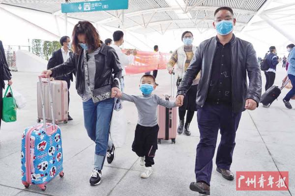 据了解,为努力纾解湖北籍返穗人员后顾之忧,在疫情防控常态化条件下加快恢复生产生活秩序,团市委、市总工会、市妇联会同市文明办、市来穗局,自3月29日起开展关爱湖北籍返穗人员“平安回家”专项行动。截至4月8日,团市委共设置了9个站场志愿服务点(广州火车站广场2个,广州南站站场5个,机场2个),80个志愿驿站社区志愿服务点,发动了1820人次站场志愿者(火车站320人次,南站1300人次、机场200人次)、3200人次驿站志愿者参与服务,发放了6963个平安回家关爱包(火车站3270个,南站3343个,机场450个),还开展了交通咨询、健康登记指引、协助行动不便的旅客乘车乘机等便民服务。