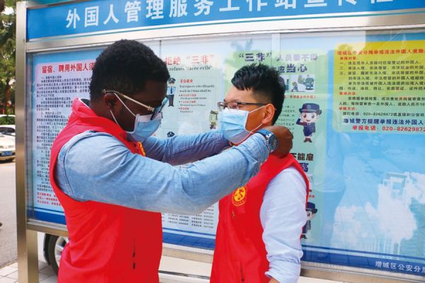 志愿者Sheriff来自冈比亚,居住在凤馨苑社区,是广东外语外贸大学大四留学生。几天前,他看到社区公布的招募志愿者公告就第一时间报了名。“他们像关怀自己家人一样照顾我,这里就是我的家。我也要尽一名家庭成员的义务!”Sheriff希望能充当与外籍友人沟通的桥梁,回馈在疫情防控期间得到的关怀。