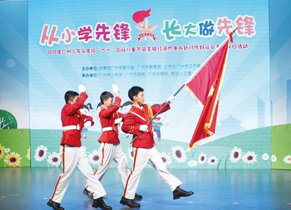 本报讯(记者 金光风 胡媛媛 通讯员 郑楚荧 摄影 黄宇帆)“少年时代是美好人生的前奏,是生命乐章的序曲,衷心地祝福你们未来的人生阳光灿烂、鲜花盛开!”广州市少工委常务副主任、团市委副书记孙柱在2020年6月1日上午广州市少先队庆祝“六一”国际儿童节暨“从小学先锋 长大做先锋”——羊城红领巾争做新时代好队员主题队日活动上对现场的少先队员们祝福,同步也通过云端传给了正在收看活动的全市少先队员。今年,广州百万少先队员选择通过直播平台在线上共同庆祝“六一”国际儿童节。