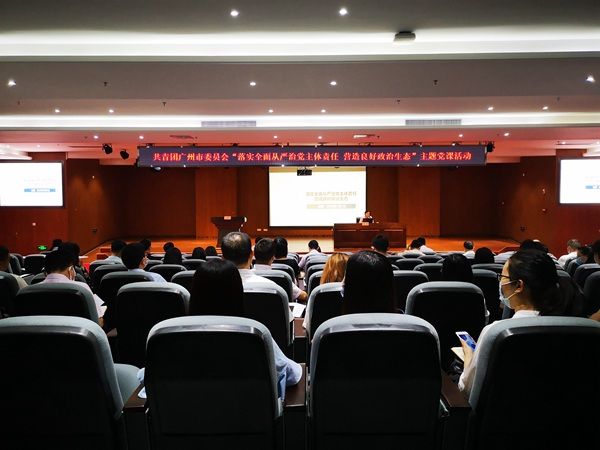 本报讯(记者 梁茹欣 通讯员 简薇 鲁涛)7月1日下午,为庆祝中国共产党成立99周年,团市委书记班子、机关全体干部、下属事业单位副处级以上干部、团市委青年理论学习小组全体成员在广州市团校志愿综合楼2楼礼堂开展了“落实全面从严治党主体责任 营造良好政治生态”的主题党课,团市委书记徐柳同志围绕主题讲授党课,并代表书记班子,向团市委系统各级党组织、广大党员,致以节日的问候。