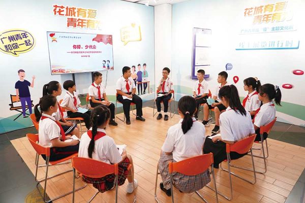 当天下午,广州市少先队理事会在青年文化宫“广州青年抗疫展”现场开展“你好,少代会——学习领会习近平总书记贺信精神大家谈”红领巾议事堂活动。现场小理事们争相发言,气氛热烈。