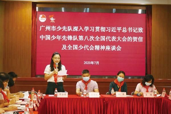 本报讯(记者 梁茹欣 通讯员 雷霞 穗团宣)7月23日至24日,中国少年先锋队第八次全国代表大会(以下简称“全国少代会”)在北京举行。开幕式当天,除了组织部分代表参加广东省分会场,团广州市委、广州市少工委组织全市少先队员在线观看全国少代会开幕式直播,并通过座谈会、少先队领袖营、线上线下学习活动等多种形式组织少先队员代表热议习近平总书记贺信精神,深入传达和学习全国少代会精神。少先队员们纷纷表示,要始终牢记习近平总书记殷切期望,立志向、修品行、练本领,从小培养热爱党、热爱祖国、热爱人民的情怀,展现出朝气蓬勃的精神风貌。把红色基因一代代传下去,为实现中华民族伟大复兴的中国梦时刻准备着。