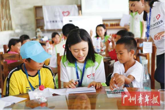 乡村彩绘活动结束后,青年志愿者来到三村村留守儿童之家,为当地留守儿童进行志愿支教。志愿者们重点辅导了英语写作及演讲技巧,并在辅导的过程中引导留守儿童勇敢表达内心想法。参与支教的青年志愿者既有来自广州市区各中学的同学,也有来自于专业机构的外教老师。其中,来自广东实验中学的王子希同学告诉记者:“我在志愿时网站看到七彩假期关爱留守儿童乡村支教志愿服务活动的招募公告,正好结合自己的专业所学,就赶紧报名了。我希望利用暑假时间发挥自己的专长,为社会多做贡献。”