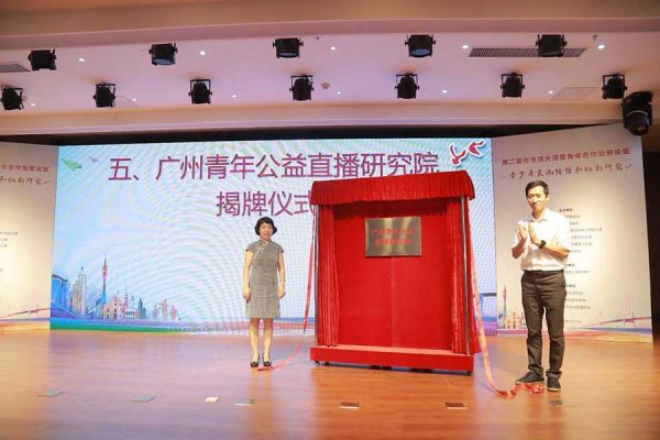 开幕式上,“广州青年公益直播研究院”正式挂牌成立。据悉,广州青年公益直播研究院将依托广州市团校的优秀师资及校外兼职老师、优秀志愿者、各界优秀青年、专业直播传媒师资等力量,充分利用广州市团校现有及筹建中的培训场地、模拟演播室和直播间,开展公益直播培训、公益直播研究和公益直播成果展示等三个方面的工作,不断提升青年的媒介素养,服务青年成长成才。并将联合广州广播电视台在北京路粤港澳大湾区青年家园建设青年公益直播实训基地,打造青年公益直播间,创作一批高质量的微视频,在社会各网络平台进行展播,体现新时代大湾区青年的精神风貌,创新思想引领方式,促进大湾区青年融合发展。