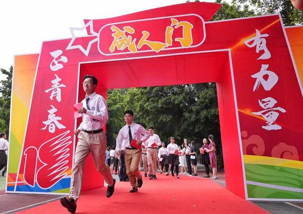 “孩子们,你们是今天典礼的主角。祝贺你们,你们长大成人了!”广州奥林匹克中学高三学生黄宇鹏的父亲作为家长代表上台发言。“亭亭玉树临风立,冉冉香莲带露开。”他以诗句寄语青年,跨进成年人的行列,意味着对家庭的、学校的、学习的责任,乃至民族的、国家的、社会的责任,都要有所担当。