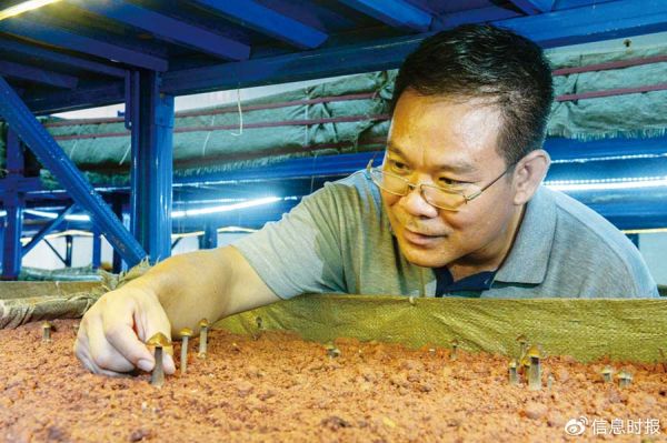 面对新的任务新的环境,他知难而进,把学习当作首要任务。虽然不懂农业也不懂市场,但他一方面认真学习文件和领导讲话精神,了解政策指引,尽力提升履职能力,另一方面积极自学农业知识和种植技术,了解产业和市场信息,个人经常利用业余时间自费到福建、湖南、海南、广西等地考察食用菌、红薯、水果玉米等种植,并用自己3年的补助款引进新品种、新技术,利用闲暇的时间进行试验搞孵化。通过不断的自学、考察、实验他从一个农业门外汉变成半个土专家。并无条件将成功孵化后的品种和项目移交给当地扶贫龙头企业,一共为当地成功引进黑皮鸡枞菌、赤松茸、木耳、高系红薯、高温水果玉米、香茹蜜等6个新品种,其中高附加值食用菌黑皮鸡枞菌车间成为梅州地区规模最大的黑皮鸡枞菌种植基地,被评定为一村一品项目。目前黑皮鸡枞菌产销两旺,直接经济效益270多万元,带动间接效益约600多万元。