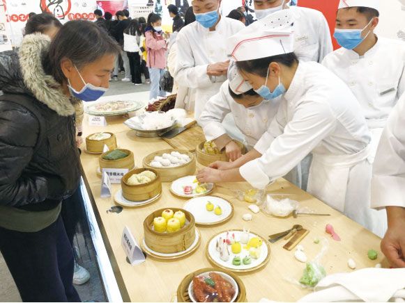 2021年元旦,记者在广州市青年文化宫一楼“三项工程”交流会粤菜师傅区域发现,岭南集团旗下中国大酒店、东方宾馆设立的2个展台旁正上演着一系列粤菜文化交流活动,现场热闹非凡。两家五星级酒店“粤菜大师”正在为实习学生进行现场教学,学生动手参与粤菜制作,并在现场互动区域开展粤菜制作技艺和经典菜品展示,与现场其他本土参展粤菜企业进行粤菜制作“比武”,更有惟妙惟肖的粤菜雕刻令人目不暇接。