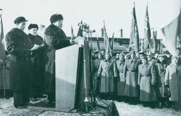 1956年1月30日,朱德访问波兰,在华沙中央车站发表演说。