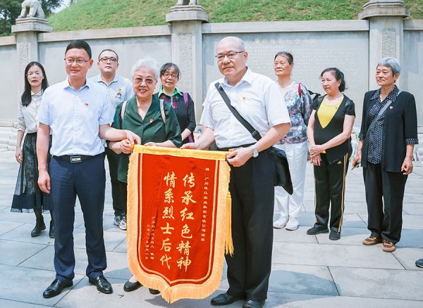 在烈士陵园,烈士墓掩映在青松翠柏的护卫中,庄严肃穆。青年志愿者们向革命烈士敬献花篮,祭奠英灵。烈士后人及参加活动的志愿者们向烈士们行默哀礼,表达对先烈的深切缅怀。随后,广州起义烈士后人代表还向珠江实业集团团委赠送了“情系烈士后代 承红色基因”锦旗,表达谢意。