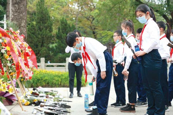 4月9日下午,团市委、市少工委、市学联、市青联、市青志协联合在广州起义烈士陵园,举办广州市青少年党史学习教育暨“清明祭英烈”活动。新当选的共青团广州市第十六届委员会成员、团市委系统副处级以上党员干部、先进青年团员代表、少先队员代表以及团市委青年理论学习小组成员约200人参与了本次活动。