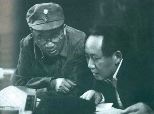 1945年4月,毛泽东和朱德在中国共产党第七次全国代表大会上。