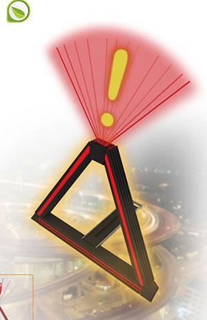 夜晚和雨雾天气使用,向上 180°转动,启动夜间模式,红色 LED灯会自动摆动,并出现红色叹号警示,还拥有具备锂电池、外接电源和内置发电等多种续航能力。